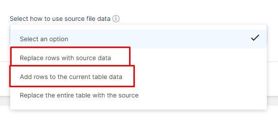 If you are updating an existing Manual Table and trying to add new rows (using “Replace rows with source data” or “Add rows to the current table data”), you may see an error such as: