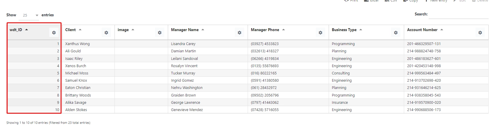 Include only your custom columns (for example: Client, Manager Name, Business Type, etc.)